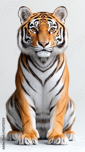 © AI_Imaginator, Fototapeta premium A majestic tiger sitting on a white background.