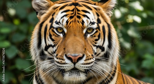 © aulia, Fototapeta premium A majestic tiger staring intensely, showcasing its striking features and natural beauty.