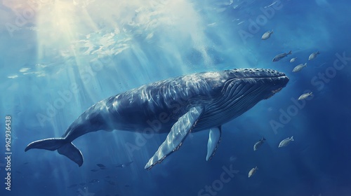 Fototapeta premium A majestic whale gracefully swimming through the deep ocean