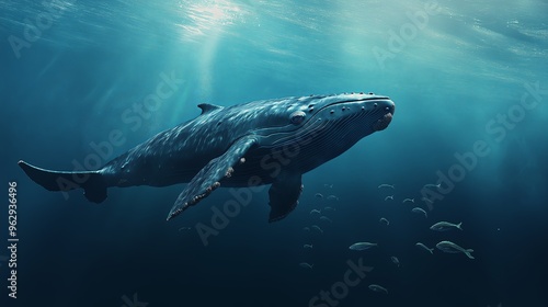 Fototapeta premium A majestic whale gracefully swimming through the deep ocean
