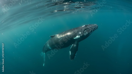 © Lakcreations, Fototapeta premium A majestic whale swimming through a sky filled