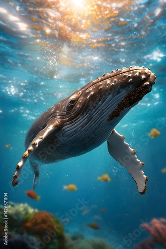 Fototapeta premium A majestic whale swims gracefully through the underwater seascape