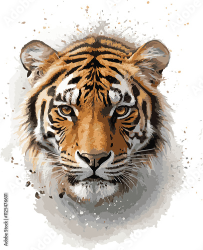 © Tiger_Stock, Fototapeta premium A majestic white Bengal tiger, a rare and wild feline, stares intently with piercing eyes, Watercolor