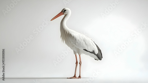 Fototapeta premium A majestic white stork stands gracefully against a minimalistic background,...