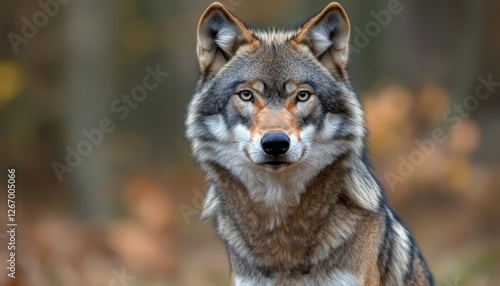 © Sirirat, Fototapeta premium A majestic wolf in a natural setting.