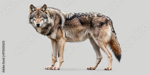 © KM, Fototapeta premium A Majestic Wolf with Thick Detailed Fur Standing Alone Isolated On Transparency
