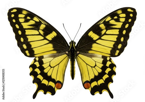 © PP Creative, Fototapeta premium A majestic yellow and black butterfly with its wings fully spread isolated on white background