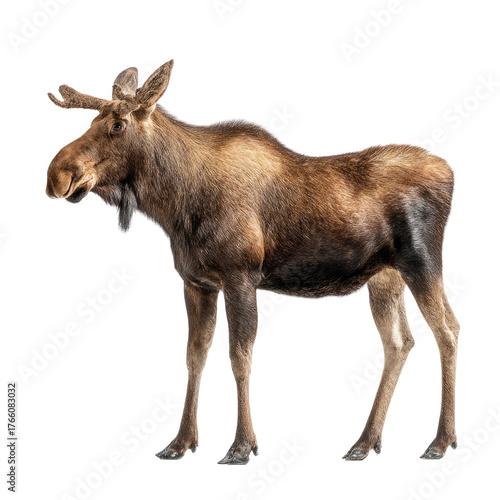 Fototapeta premium A majestic young moose stands gracefully on a solid transparent background,...
