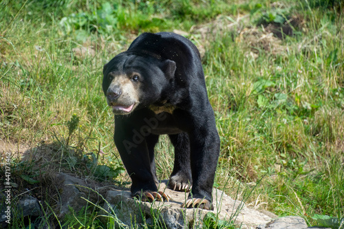 © Ross, Obraz premium A Malayan sun bear walking through grass.