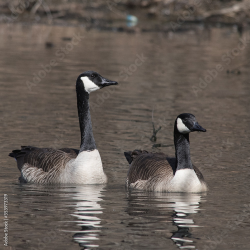 Fototapeta premium A Male and Female Canadian Goose swimming together in a lake.
