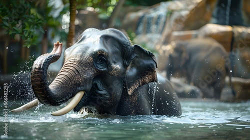 © Berkah, Fototapeta premium A male Asian elephant is enjoying bathing.