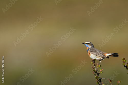 © Andrew, Fototapeta premium A male Bluethroat sings from a shrub on Alaska's North Slope.