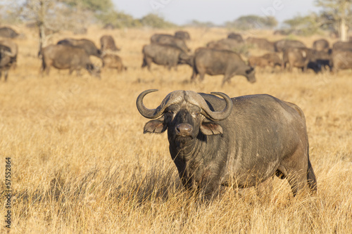 © stuporter, Obraz premium A Male Cape Buffalo with herd, South Africa