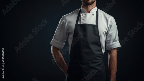 © Nathan, Naklejka premium A male chef in a white uniform poses confidently against a dark background.