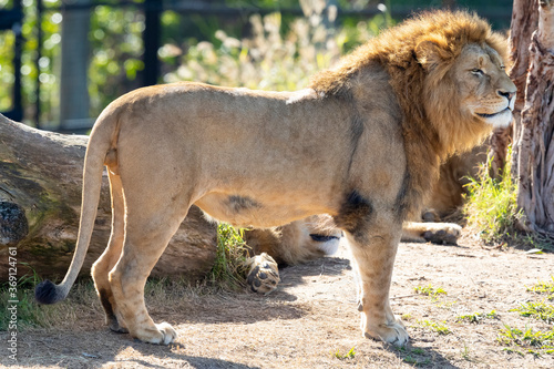 Naklejka premium A male Lion standing in the sunshine