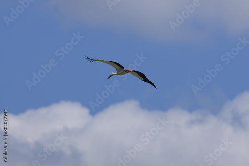 Obraz premium A male Oriental Stork flying in search of presents for his wife