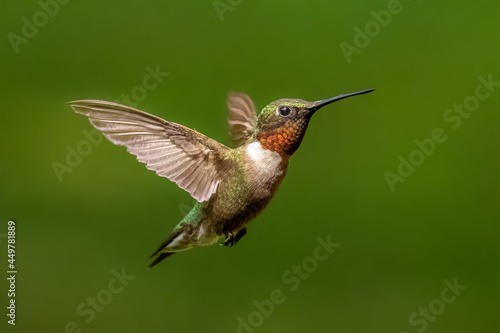 © Samuel, Obraz premium A male Ruby-throated Hummingbird (Archilochus, colubris) in flight. Tennessee.