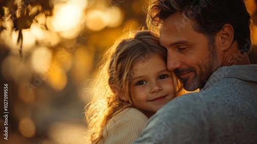© liliyabatyrova, Fototapeta premium A man and a little girl are hugging each other