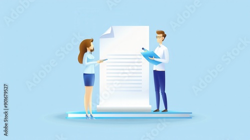 © THAKDANAI, Obraz premium A man and a woman are standing in front of a white piece of paper