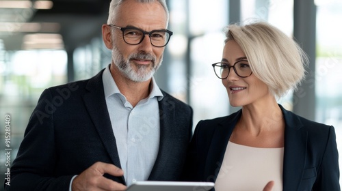 © Space Priest, Fototapeta premium a man and woman looking at a tablet