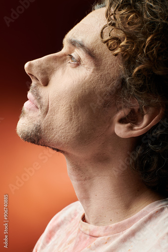 © LIGHTFIELD STUDIOS, Fototapeta premium A man displays deep emotion while posing against a colorful background.