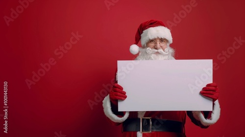 © Andrei, Naklejka premium A man dressed as Santa holding a blank sheet