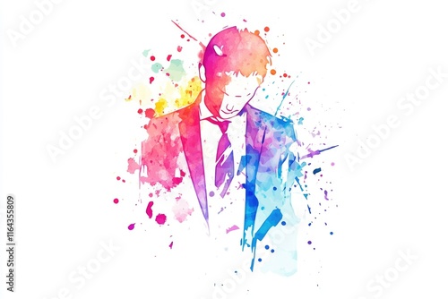 Fototapeta premium A man dressed formally in a suit and tie, depicted in a watercolor painting