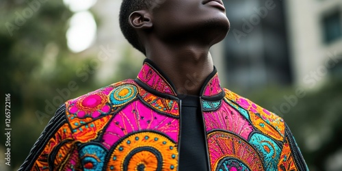 © Alla, Obraz premium A man dressed in a colorful jacket and tie, suitable for business or formal occasions