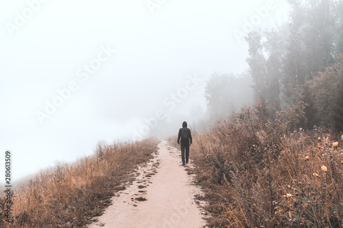 Obraz premium A man going into the misty distance