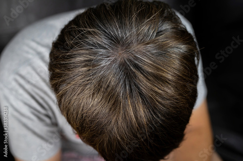 Naklejka premium A man has hair growth, he has hair loss problems. Dry scalp, dandruff