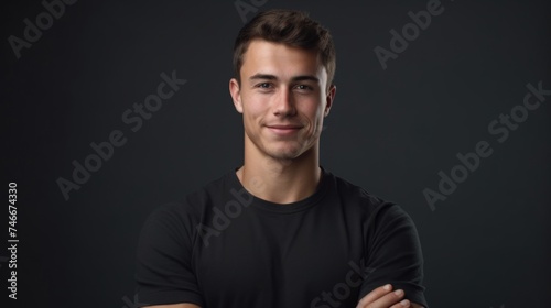 © Fotograf, Naklejka premium A man in a black shirt posing for a picture. Ideal for business or casual concept