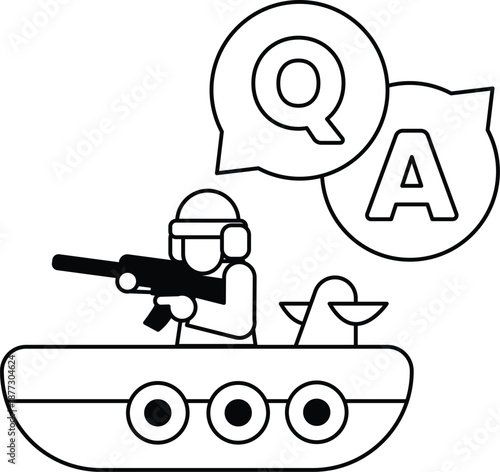 Fototapeta premium A man in a military uniform is holding a gun and riding a boat