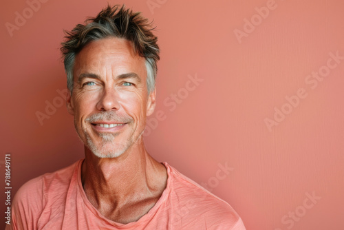 © MagnusCort, Fototapeta premium A man in a pink shirt is smiling and looking at the camera