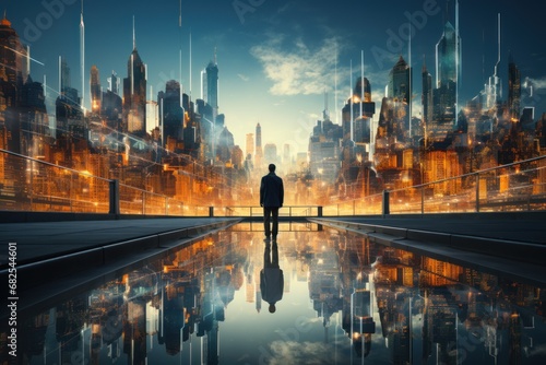 © lublubachka, Fototapeta premium a man in a suit is standing outside a building