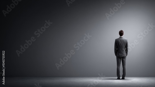 © Janis, Fototapeta premium A man in a suit standing in front of a gray wall