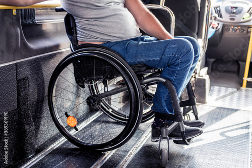 © romaset, Obraz premium A man in a wheelchair inside of a specialized vehicle