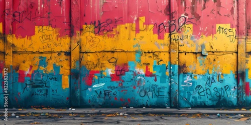 © VAshowcase, Obraz premium A man in casual attire strolls down a street lined with a vibrant wall covered in graffiti art