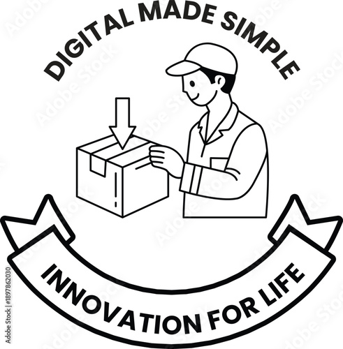 © toonsteb, Fototapeta premium A man is holding a box and the words "Digital Made Simple" are on the box