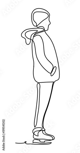 Fototapeta premium A man is riding a ice skate. Continuous line drawing. Isolated on the white...