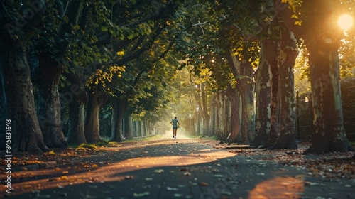 Obraz premium A man jogging along a treelined path