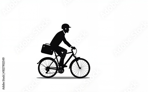 Fototapeta premium A man riding a bicycle in a helmet to work with a briefcase, transparent...