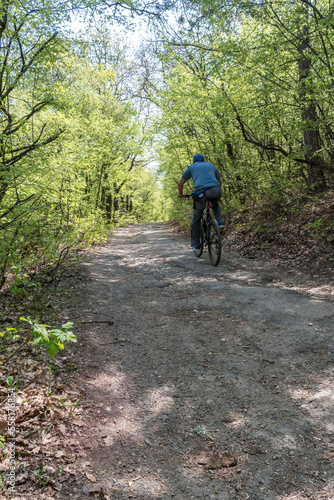 © Petko, Obraz premium A man riding a bicycle on the driveway in the park.