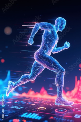 © cff999, Fototapeta premium a man running on a glowing background