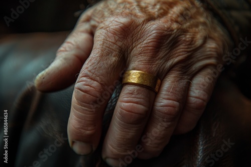 © Bargais, Fototapeta premium A man's hand with a gold ring.