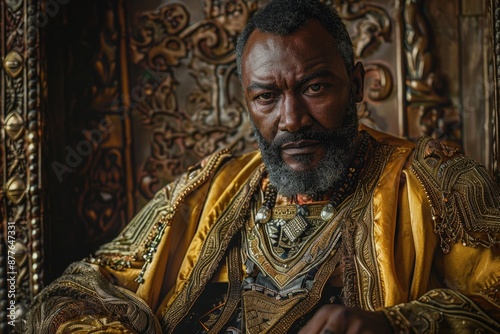 Naklejka premium A man sitting in a chair with a long beard, good for editorial or lifestyle use