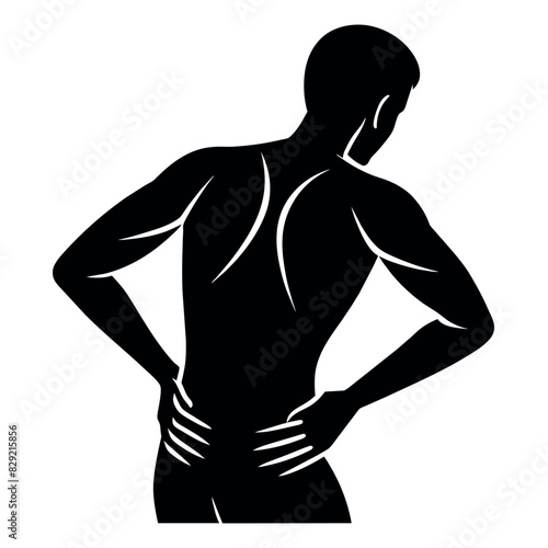 Fototapeta premium A man suffering back pain problem vector silhouette, white background
