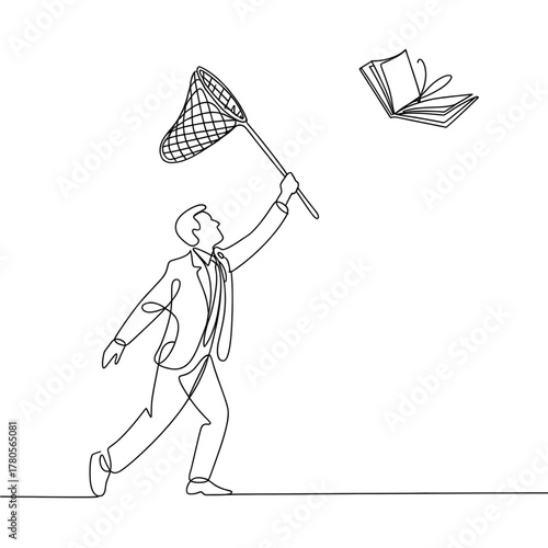 Fototapeta premium A man surrounded by flying books, symbolizing imagination, creativity, and...