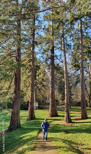 © KrisKris, Obraz premium A man walking in the forest