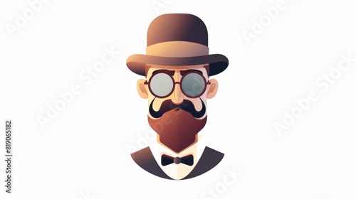 Fototapeta premium A man wearing a hat, glasses, and a mustache. Suitable for various projects