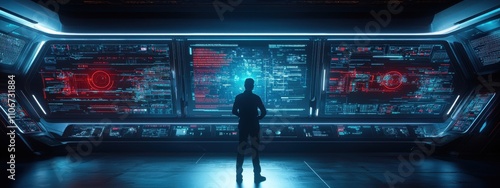 © Exnoi, Obraz premium A man wearing headphones is sitting in front of a computer